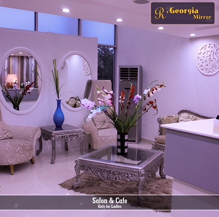The R. Georgia Mirror Salon & Café project, located in DHA, Lahore, involved complete interior design and fit-out execution for a hybrid commercial space combining beauty services with a café experience. The concept required a carefully balanced design approach that could seamlessly accommodate two distinct functions within a single environment while maintaining visual harmony and operational efficiency. Rukha Interiors approached this project with a clear objective: to create a stylish, contemporary, and inviting space that delivers a premium customer experience while supporting the practical needs of both salon operations and café service. The result is a thoughtfully designed interior that feels cohesive, relaxed, and visually engaging.